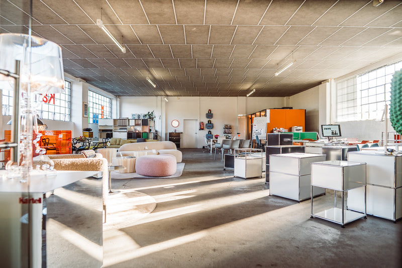 Bevor unsere Möbel online gehen, können Sie sie live in unserem 650 m² Showroom in Havixbeck erleben. Sorgfältig aufgearbeitete Klassiker von USM Haller, Vitra und Thonet – ergänzt durch handverlesene Neuheiten von Kartell und OUT – Objekte unserer Tage.