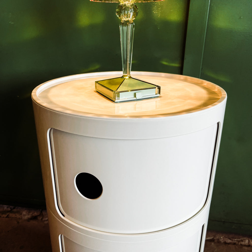 Der Componibili Container mit drei Ebenen in Weiß ist ein Designklassiker von Anna Castelli Ferrieri für Kartell und besteht aus robustem, recycelbarem ABS-Kunststoff. Sein ikonisches, rundes Design mit Schiebetüren vereint Funktionalität und Stil auf kleinstem Raum. Ob als Nachttisch, Badregal oder Beistellmöbel – der vielseitige Componibili passt sich jedem Wohnbereich flexibel an.