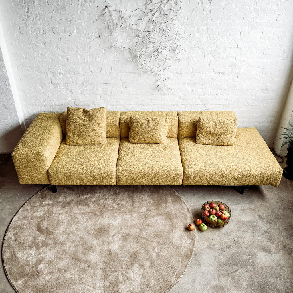 Das Kartell Sofa Largo ist das modulare Sofasystem mit klarer Formsprache! Es überzeugt als flexibles Sofasystem mit vielfältigen Konfigurationsmöglichkeiten. Klare Linien und großzügige Sitzflächen prägen das Design und bieten höchsten Komfort. Dank seiner modularen Bauweise lässt sich Largo perfekt an jede Wohnsituation anpassen – ob großzügiges Wohnzimmer oder kompakter Wohnbereich.Der Stoff Curly in Acid Yellow verleiht dem Sofa einen besonderen Charakter. Er ist extrem weich im Griff, langlebig und abziehbar – ideal für den täglichen Einsatz mit Stil.