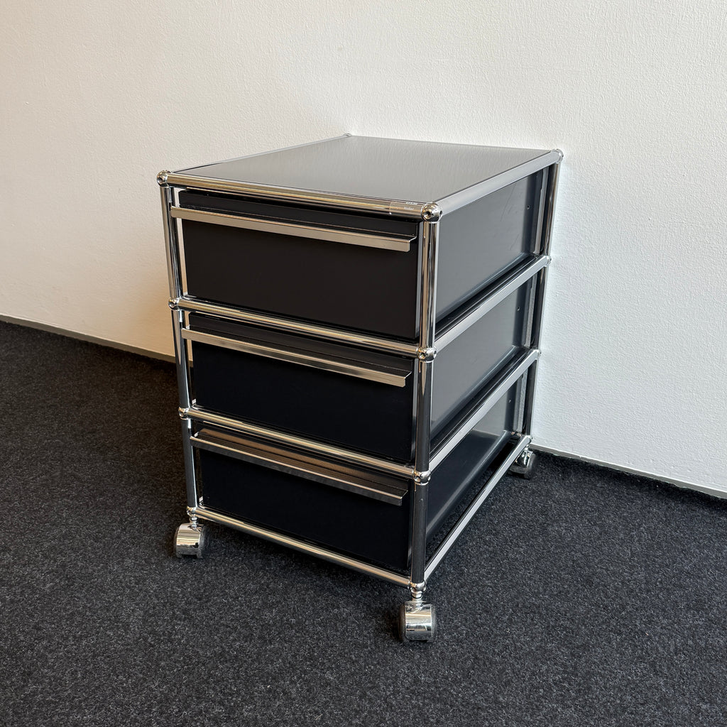 Beschreibung: USM Haller - Rollcontainer - Schwarz - Drei A6 Schubladen